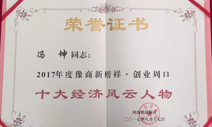 恭贺四通锅炉总经理冯坤荣获创业周口十大经济风云人物